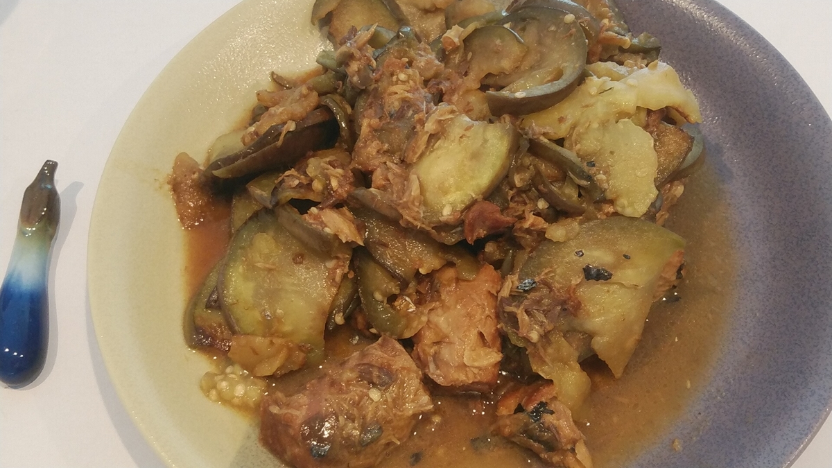 水茄子をレンチンして、サバ缶とあえてみました。